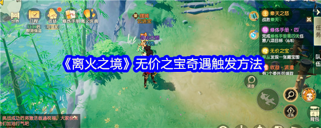 离火之境无价之宝怎么触发?游戏中有很多奇遇任务,不同的奇遇大家做完可以获取奖励!下面是小编给大家带来的《离火之境》无价之宝奇遇触发方法,感兴趣的小伙伴们一起来看看吧。