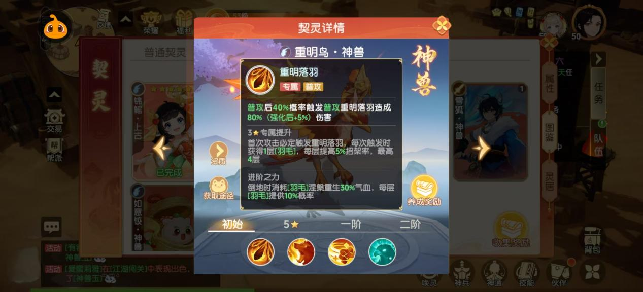 以上就是小编整理带来的《离火之境》重明鸟技能资质打书推荐,更多精彩内容,请点击关注手游网,小编将持续为您更新!