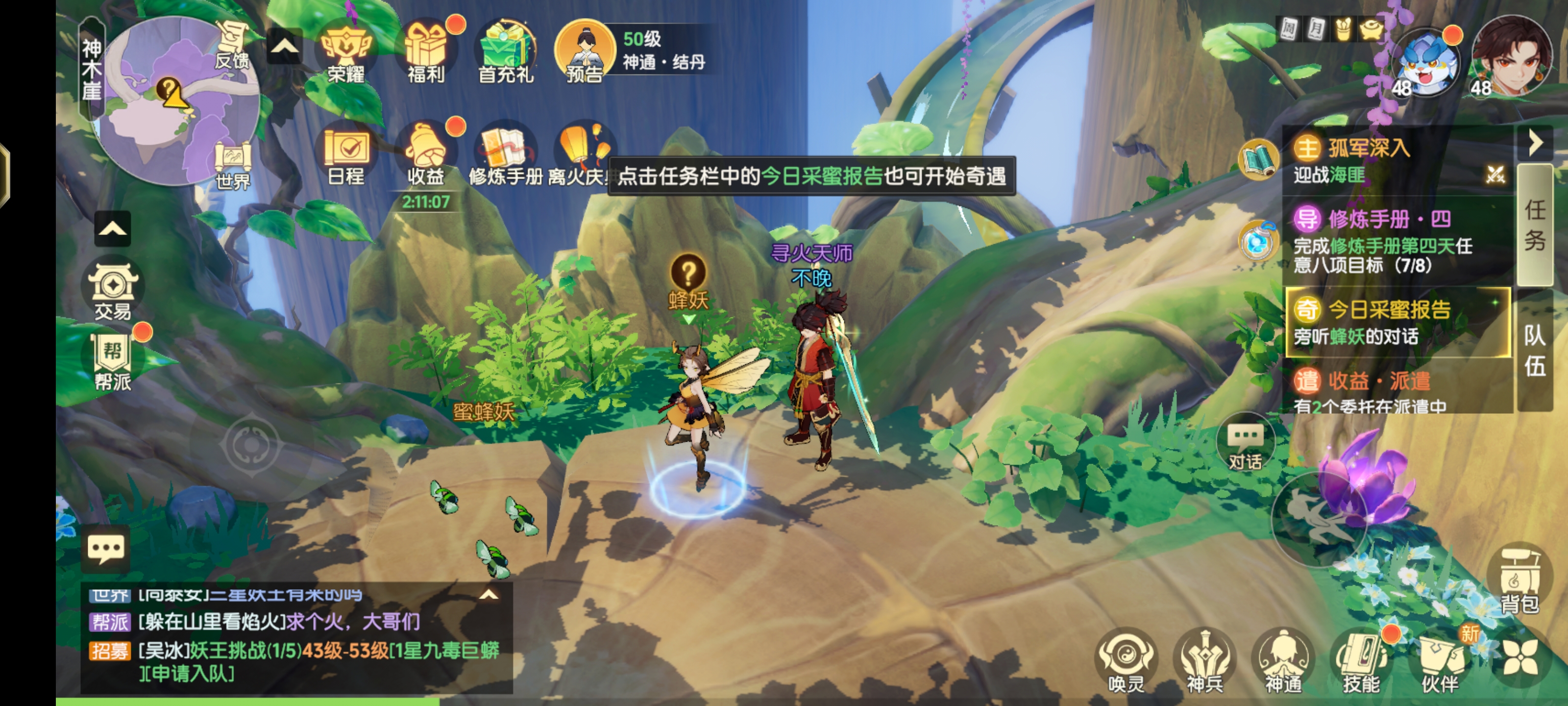 在神木崖触发,点击蜂妖触发今日采蜜报告奇遇。