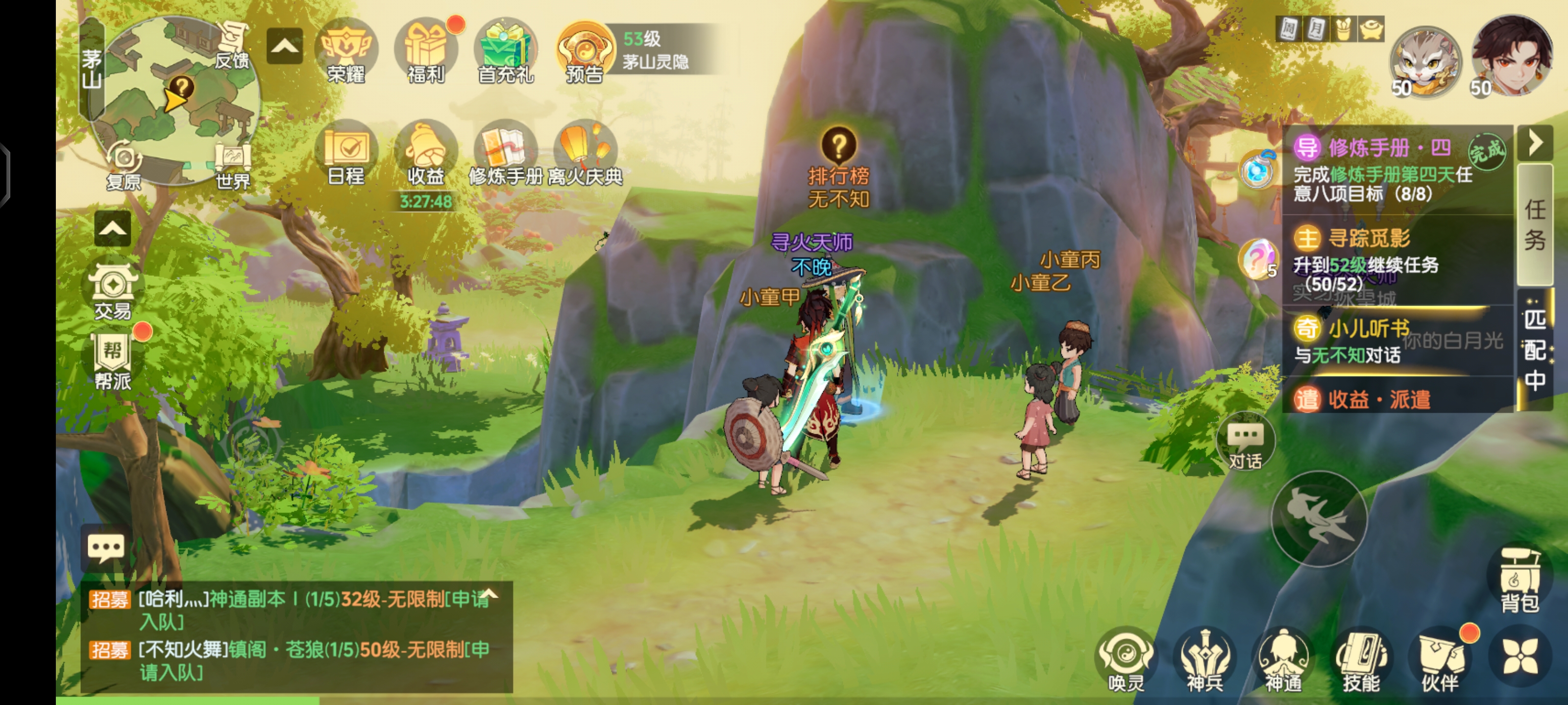 小儿听书奇遇是在茅山触发的,点击对话,点击我想知道排行榜(无不知),触发小儿听书。