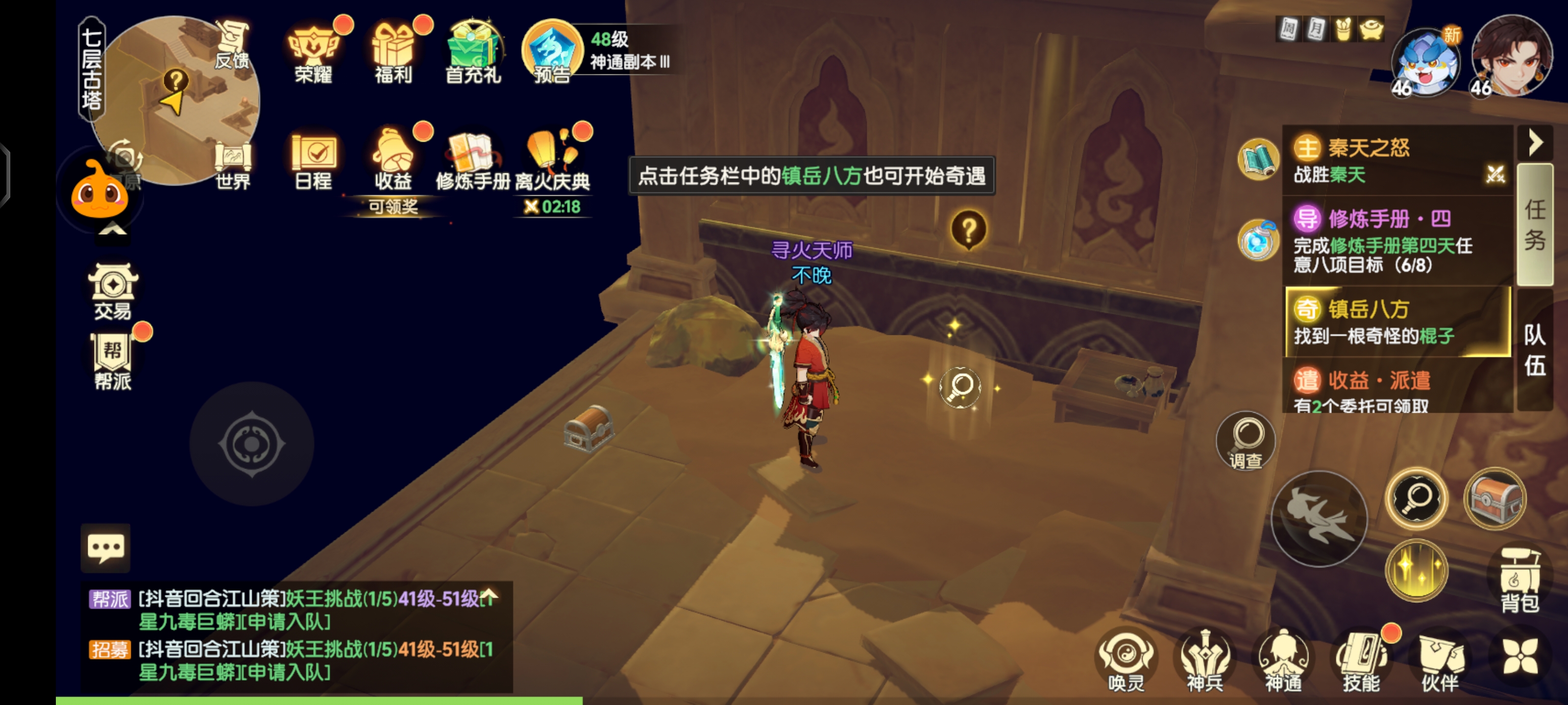 点击任务栏中的【镇岳八方】也可开始奇遇