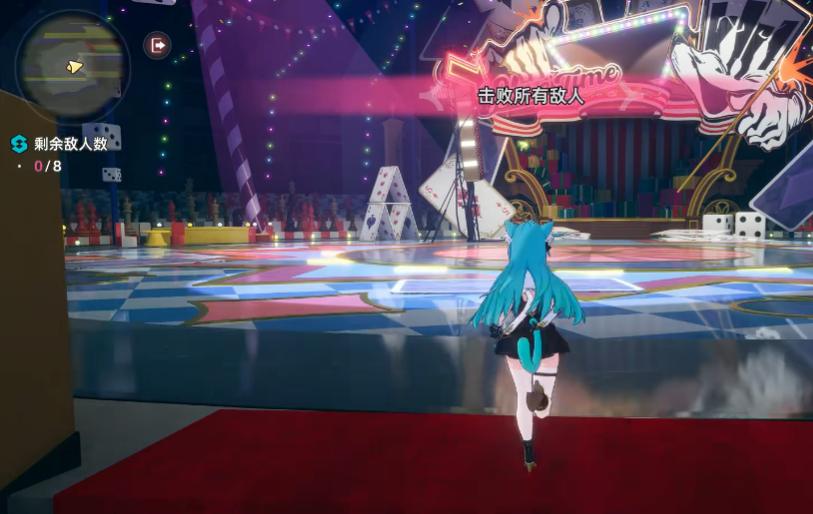 然后点击进入可以直接来到这个副本中间了,或需要静一段时间。这个副本中的场景出现在一个马戏团中央,然后马戏团会出现一些由都市街道中的道具所组成的怪物。这些怪物的能力都比较呆板,我们要快速切换角色并打出高额伤害就能消灭。