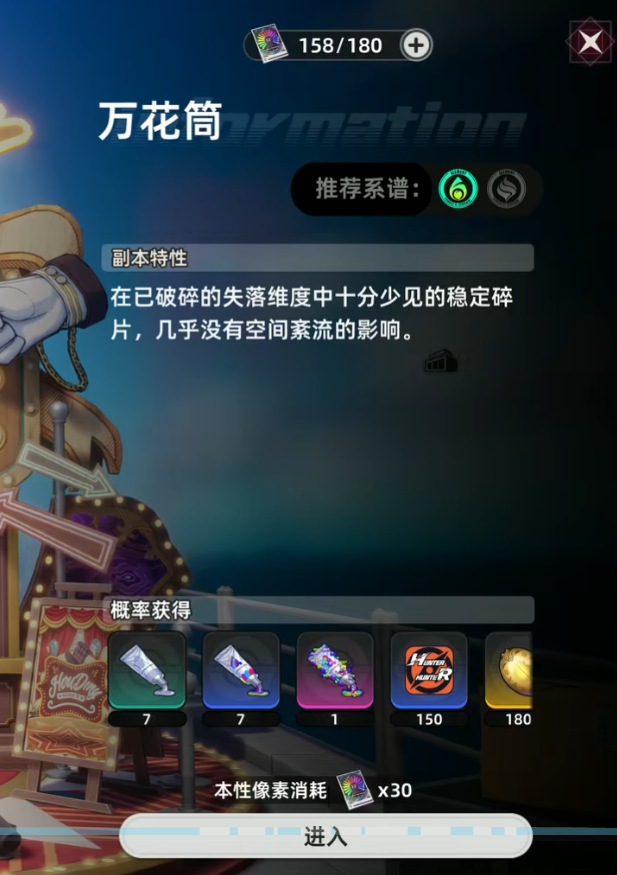其实当我们做好这几点之后,又只需要使用队伍中的角色并释放技能以及攻击去刷怪。可以有条不紊的通关,这里面的怪物并没有什么特殊的机制,只要我们属性或者强度达标即可,最后再使用30个本性像素,就可以成功领取通关奖励了,其中包含各种角色升级材料或或者提升技能等级的道具。