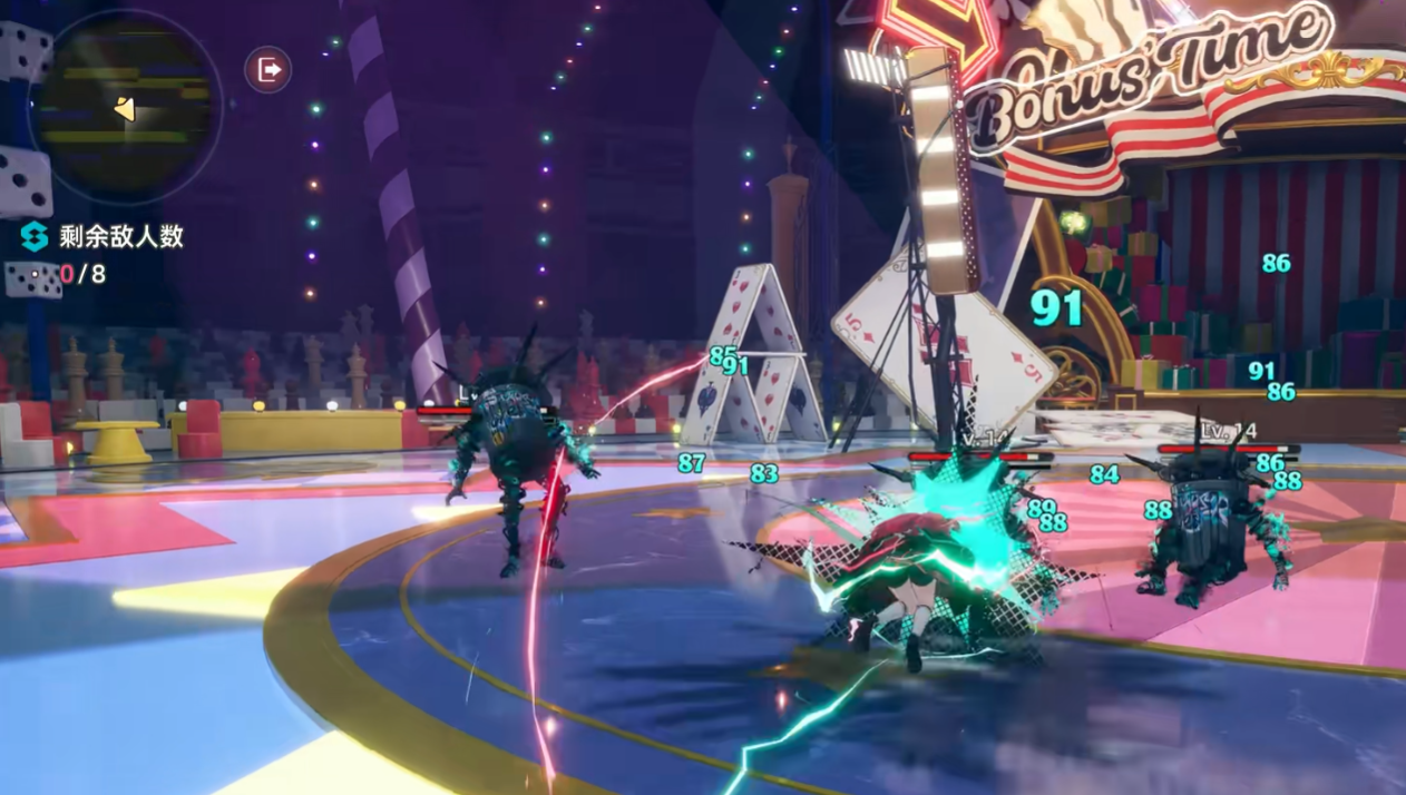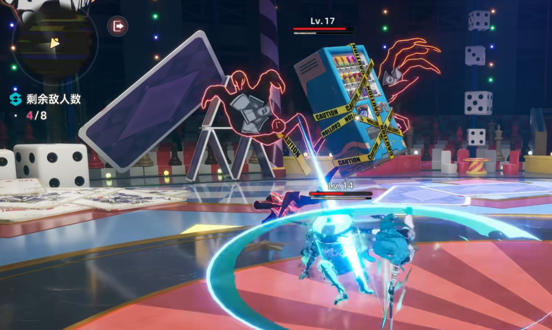 然后我们再将剩下的几个小怪全部清理掉,要注意最好前往怪物的背后攻击,这样就能够正面躲掉他们的伤害。刷完最后一个怪物之后又会出现新的怪物波次,这时场上会剩下4个敌人。除了三个垃圾桶之外,还会出现一个被封印的饮料机。