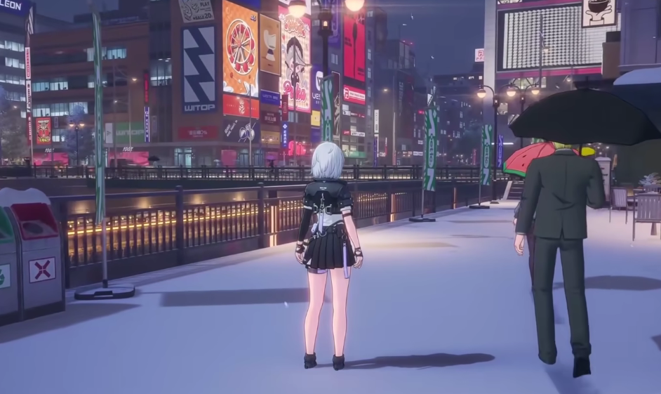 还有,天气之间的衔接变换也做得非常丝滑,看起来一点都不生硬。有可能上一秒整个世界都沉浸在暖洋洋的日光下,不到一秒钟就会下起大雨,而行人们或打起伞漫步,或抬手挡住自己的头奔跑避雨,整个画面都不会显得违和。