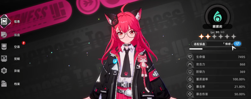 每个角色在名称下方有一个“适配弧盘”,每个角色都是不一样的,主角是“本能”,薄荷是“认知”,娜娜莉是“情感”,也能将其理解为属性,有不同属性的时候就需要去搭配不同的弧盘。