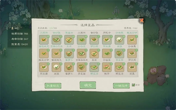 选取高营养食物或菜品种类的丰富程度 (体质经验和寿命经验两个经验决定村民的寿命长短以及劳力