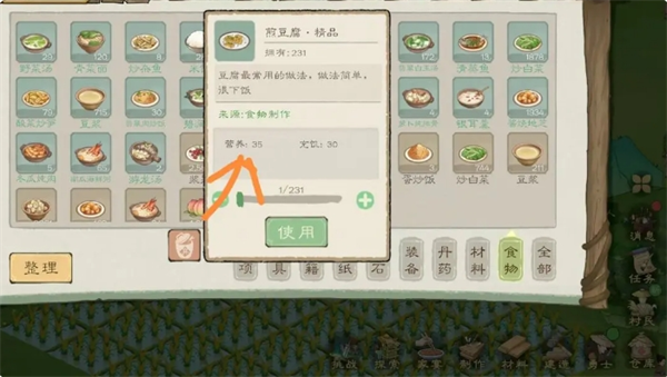 (2)背包内食用,为提供饱食度不会增加寿命经验(推意使用一些低营养值的食物)