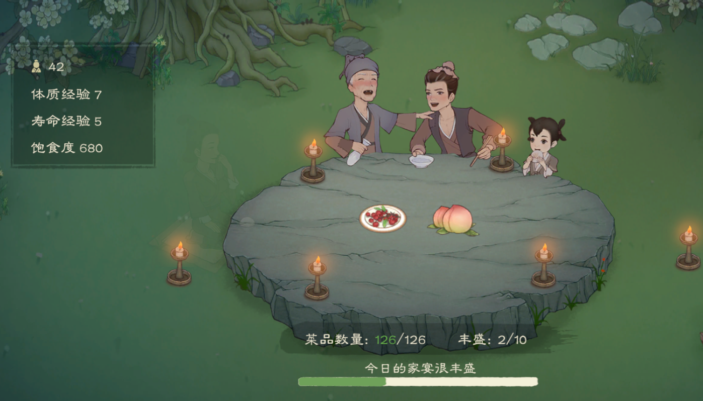 村民体质劳力寿命与每晚家宴的关系:这三个都是经验贴,每晚吃饭以及不死树摇寿果都可以增加这些属性的经验值,换言之,吃得越好,升级越快,劳动力越高,采集建造研究之类的速度越快,效率越高,发育越快,所以吃饭是不能少的环节,长期吃的太烂就会导致全村劳动力低下。