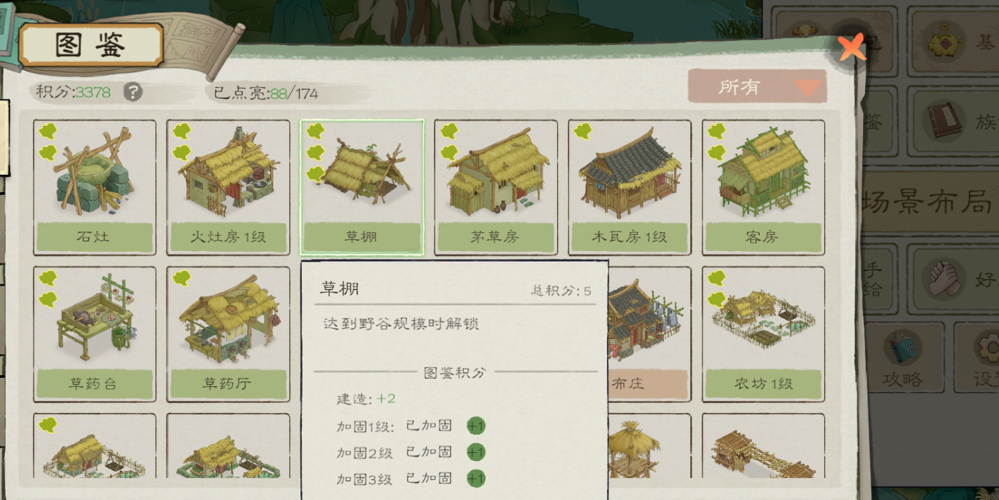 关于图鉴:右侧菜单栏有个图鉴,图鉴里面点开可以加固,加固后每天耐久下降会减缓,可以有效帮助前期节约修理用的铜币和资源。