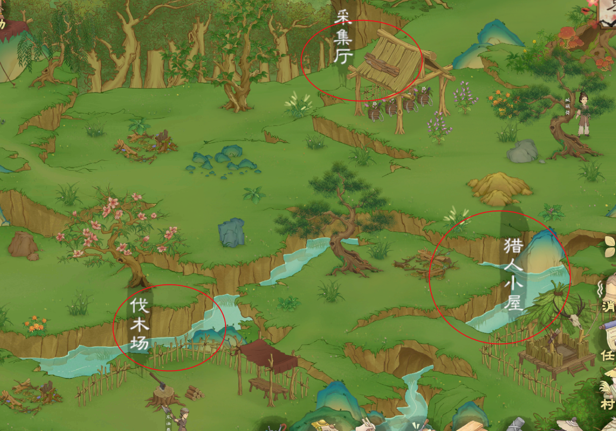 森林解锁后有三个固定采集点,也是前期重要资源,别忘了每次刷新的时候去采集。