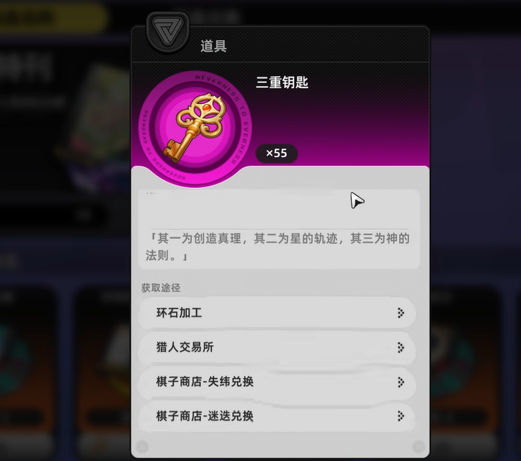 三重钥匙在这个游戏里面算是核心货币了,不光能兑换精炼材料,还能直接用来抽武器池。所以搞清楚三重钥匙怎么获取非常关键,这直接决定了你能不能在一个版本内凑齐自己想要的武器配置。目前游戏里面给出了五种获取途径,但实际上真正适合普通玩家的没几个。