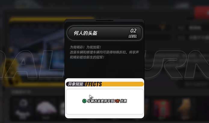 何人的头盔不只是一个装饰品,同时也能降低车辆改装费用,每个成员都能拥有多套房产或者车辆,借助车辆玩家可以在游戏里快速穿梭,同时车辆也是玩家和其他成员展开速度竞赛的工具,初始车辆都一样,无法展现出玩家个人的个性,通过改装的方式能调整车辆外观,包括其他的零部件也能做出修整,借助何人的头盔,可以让玩家每次改装的费用获得7折优惠,对喜欢车辆改装的玩家来说非常友好,有这种需求的成员首推购买公寓。