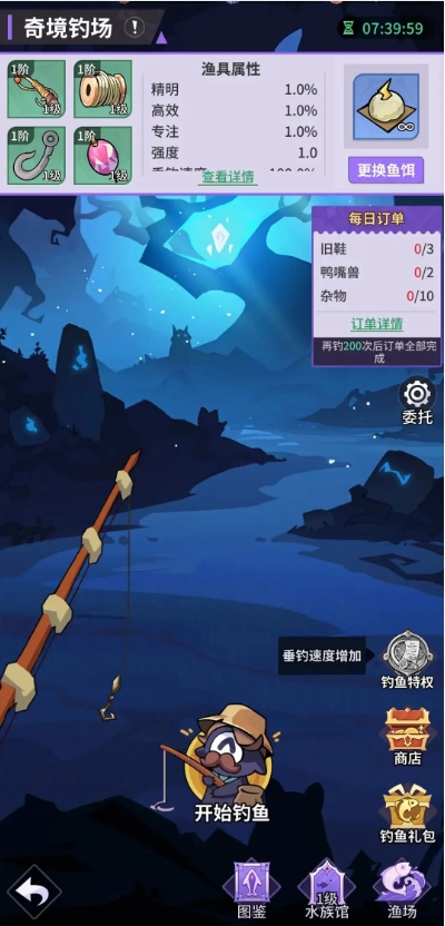 初期建议利用钻石进行洗练,积累积分快速提升渔具,以确保钓鱼效率。
