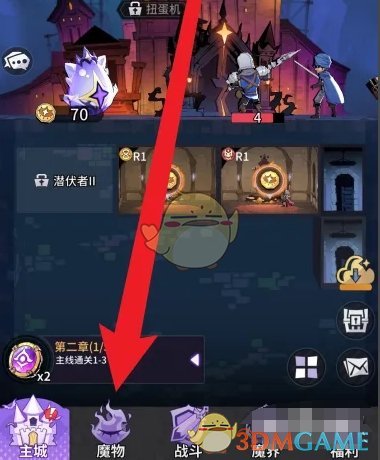 1、首先我们在游戏主页,点击下方的魔物选项前往;