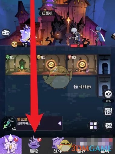 1、首先我们在游戏主页,点击主页下方的魔物选项;
