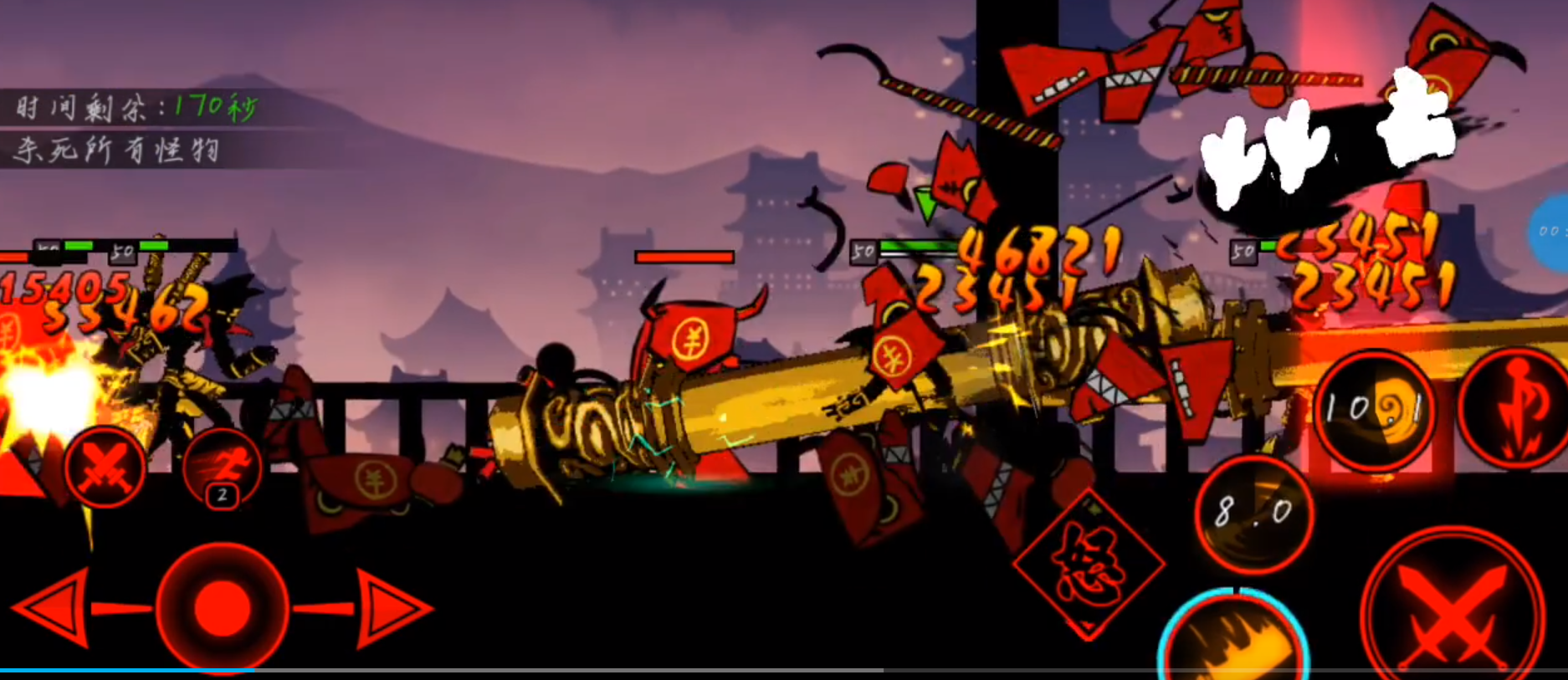 首先,小编介绍它的第一个技能,粉身碎骨。此技能下,孙悟空所拥有的金箍棒立即会变身为超级长超级粗的大棒,你可以控制它,暴压面前的boss大怪,稍微弱小一点的怪物就是死亡的结果。