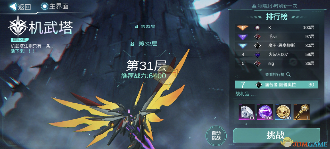 3、以增强自身实力来应对更高难度的挑战.获得排行榜奖励:机武塔设有排行榜,根据玩家的通关层数和所用时间等进行排名,排名靠前的玩家可获得丰厚的奖励,激发了玩家之间的竞争意识。