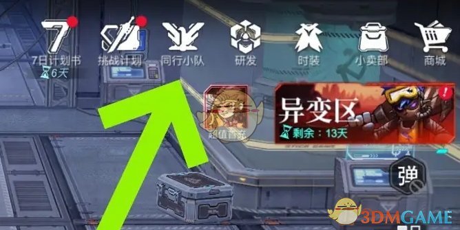 1、首先我们点击游戏主页上方的同行小队玩法进入;