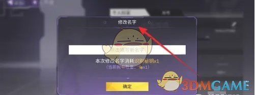 3、最后在修改名字页面,输入新昵称,消耗识别秘钥,点击确定即可完成修改;