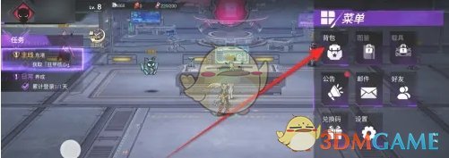 2、然后在弹出的菜单栏详情中,点击上方的背包选项;