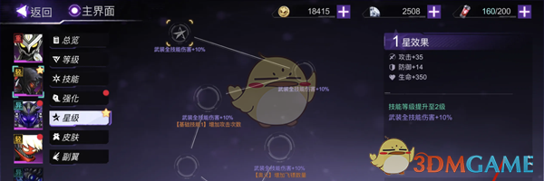 3、在星级页面,点击右下角的升星,消耗材料进行升星;