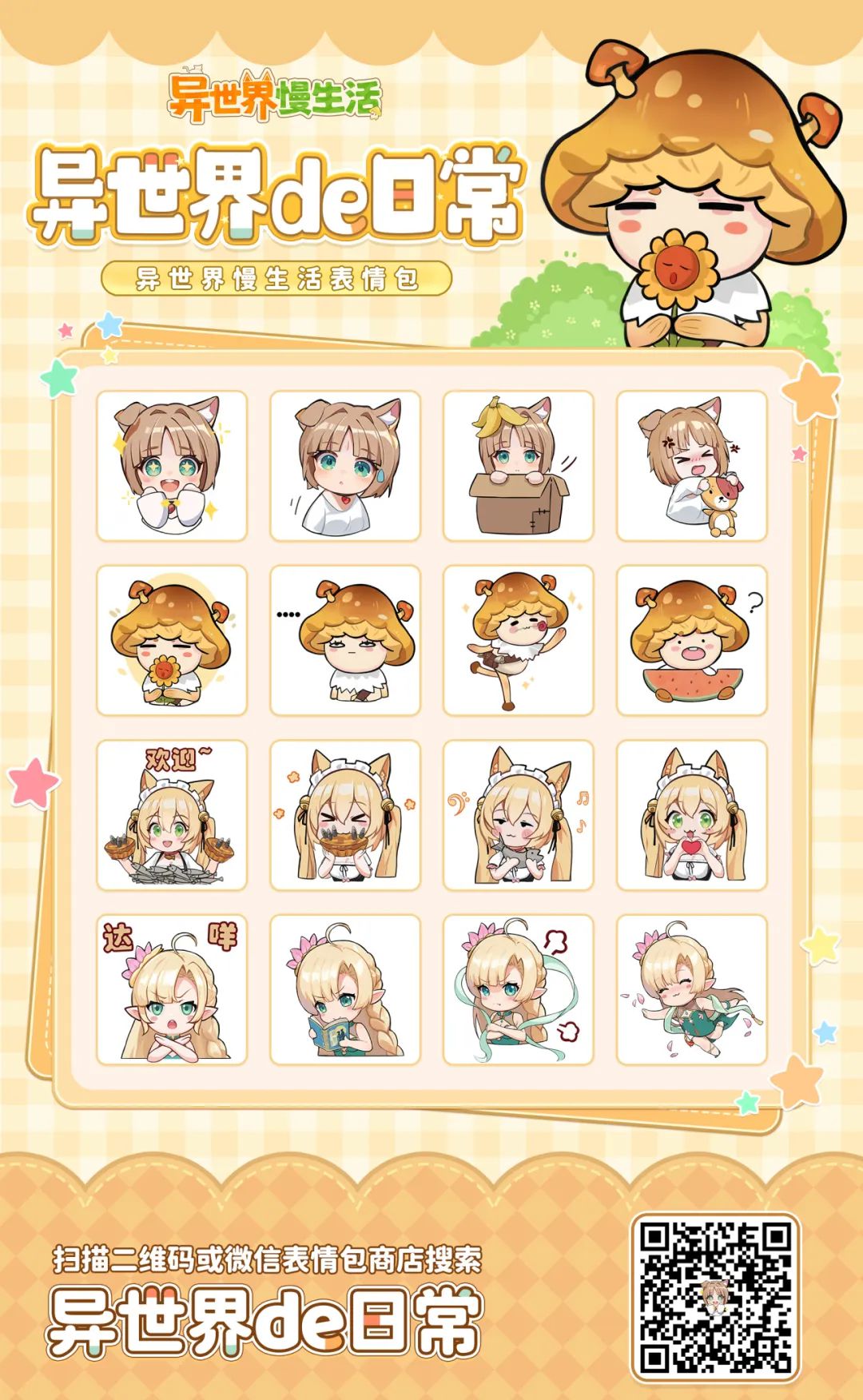 点击【我】-【表情】页面,搜索【异世界慢生活】,或直接扫描图片二维码,即可获取表情专辑。