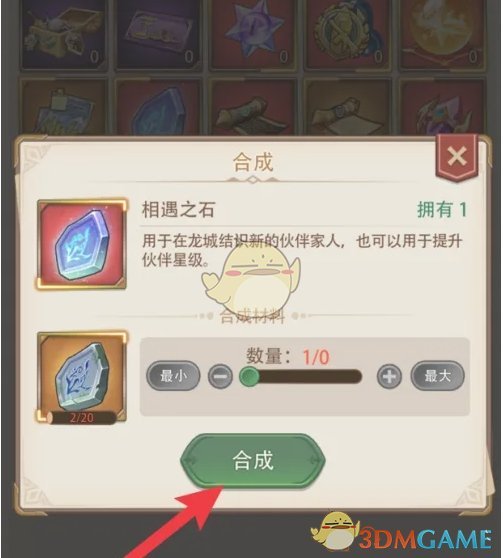 4、最后在合成页面,选择数量后,点击合成即可获得相遇之石;