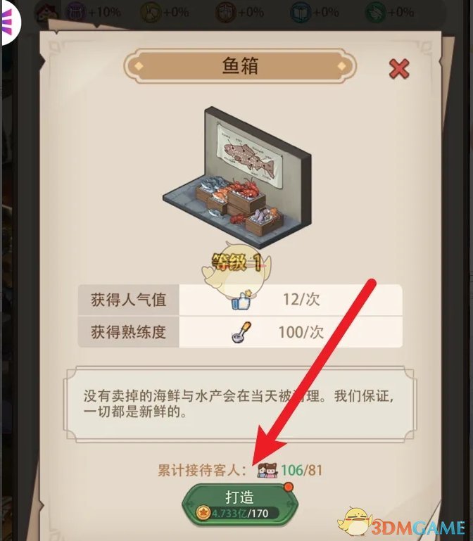 3、在鱼箱详情页内,满足条件后,点击下方的打造,消耗金币进行打造;