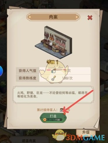 3、接着在肉案建造区域,点击下方的打造,消耗金币即可打造;