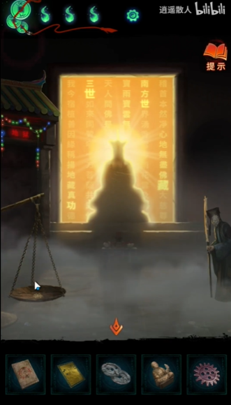 2、最后拿起金卡对着发光的佛像,就可以从卡片中看到一些文字,这就是点花灯的顺序