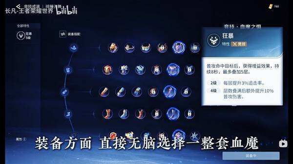 在装备选择上,建议直接无脑选择一整套血魔,这是当前版本冷春进行 PVP 对战的唯一 T0 选择,能够最大化英雄收益。