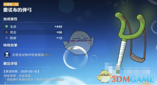 前往主线3-1,找到一块可以击碎的石头,之后即可获得撒谎布的标志性武器——弹弓。