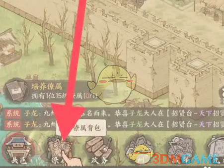1、进入到游戏主界面,在左下方的位置点击僚属进入。