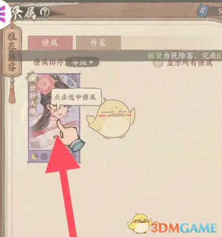 2、进入僚属页面后,找到想要升级的僚属,进入到详情页面。
