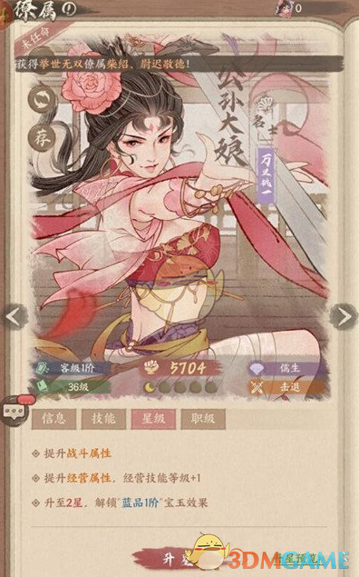 4、僚属等级提升后再点击星级可进行升星,升星后能解锁对应技能效果,从而提升战斗和经营属性。