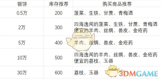 ③根据银饼的多少,决定是否增加库存,以及推荐购买的商品