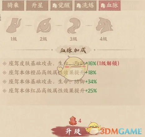 作用:觉醒(绝代)坐骑皮肤血脉的道具,可以大量提升坐骑属性。