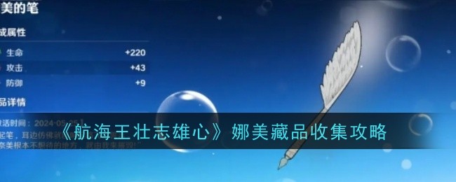 以上就是小编整理带来的《航海王壮志雄心》娜美藏品收集攻略,更多相关游戏攻略,请关注手游网!