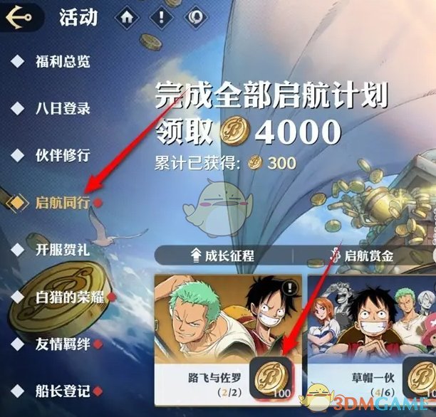 航海王壮志雄心同行羁绊奖励在哪领取?