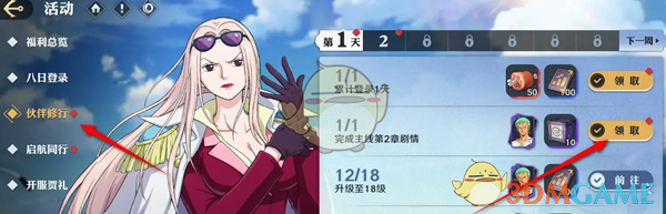 航海王壮志雄心伙伴修行活动奖励怎么领取?