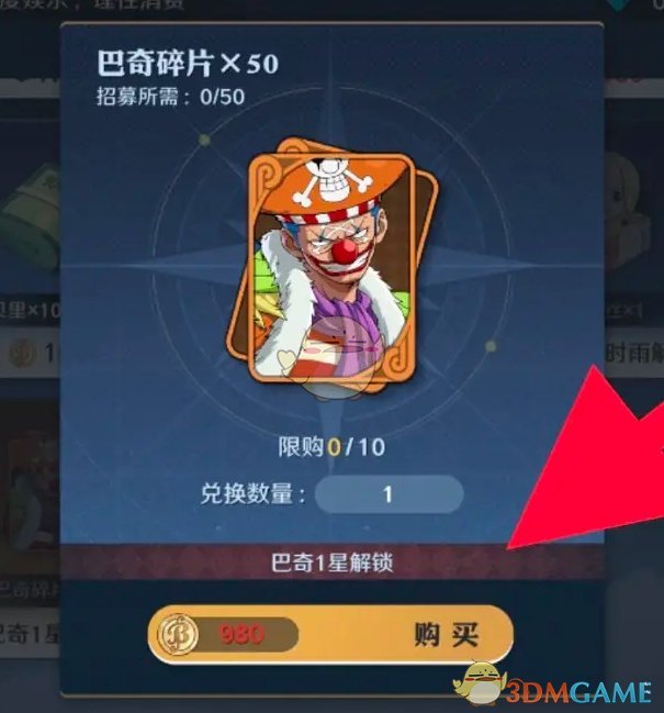 4、最后花费980个金币,点击购买即可获得巴奇的碎片;