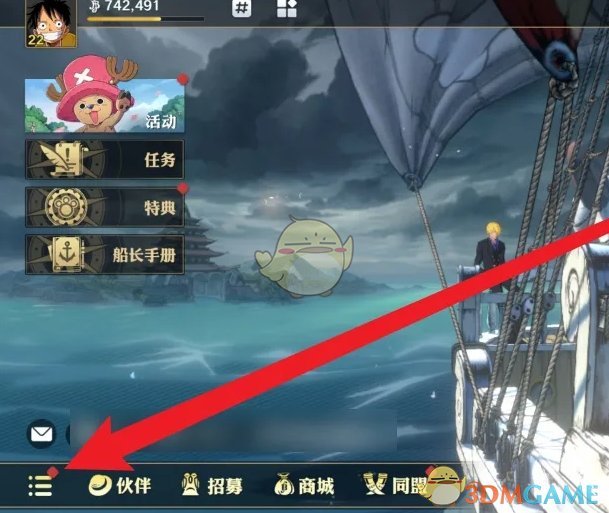 1、首先我们在游戏主页,点击左下角的菜单栏选项;