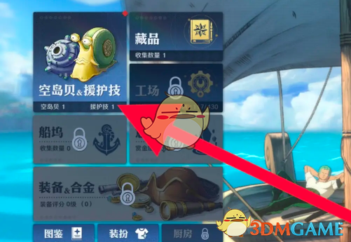 1、进入游戏主界面,点击左下角三条横线展开功能菜单选择空岛贝&援护技。