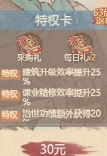 1、提升建筑升级和课业研究效率25%,每日额外获得建筑、课业加速各4小时,还能增加治世功绩获取20%。对于追求快速发展的玩家,这是赛季刚需,能显著缩短升级时间。