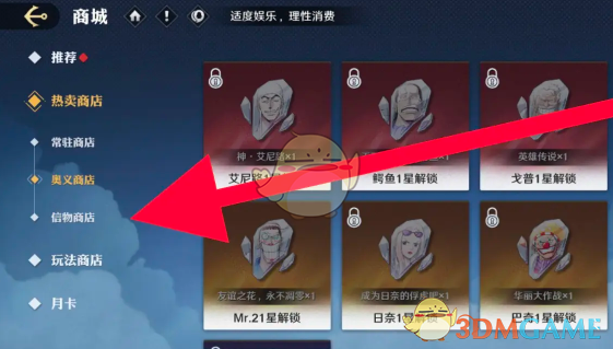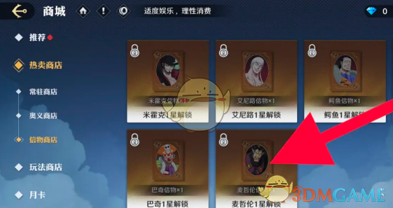 2、在信物商店栏可以看到多个商品列表,点击选择麦哲伦信物。