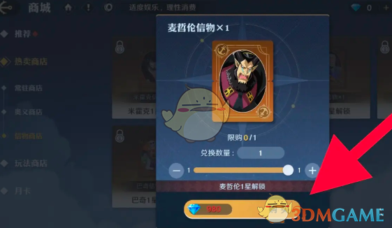 3、进入到麦哲伦信物的售卖界面,点击购买消费980钻石即可购买获得。