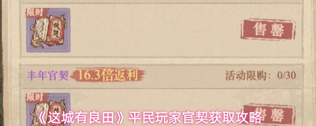 《这城有良田》平民玩家官契获取攻略: