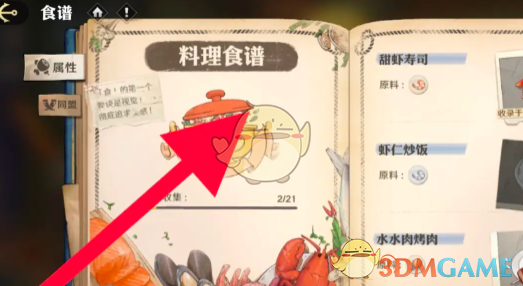 3、在食谱页面选择想要查看的料理即可查看对应的料理属性和所属同盟。