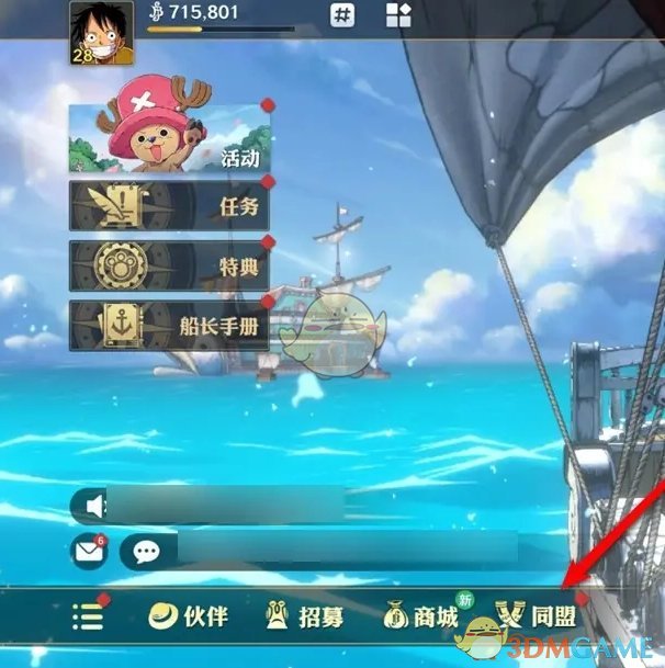 1、点击游戏主页右下角的同盟玩法前往;